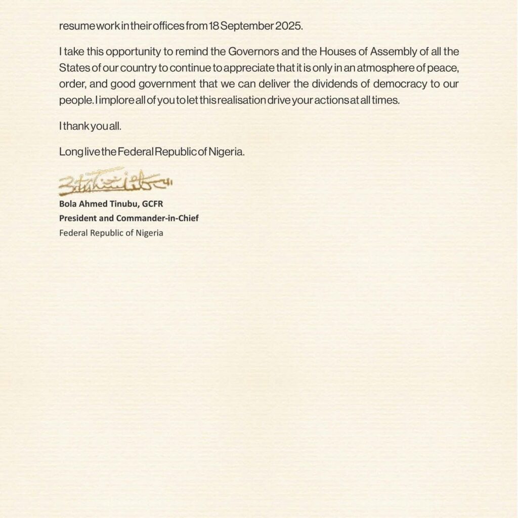 With the lifting of the emergency, Governor Fubara, Deputy Governor Ngozi Nma Odu, and the Rivers State House of Assembly will resume work on September 18, 2025.